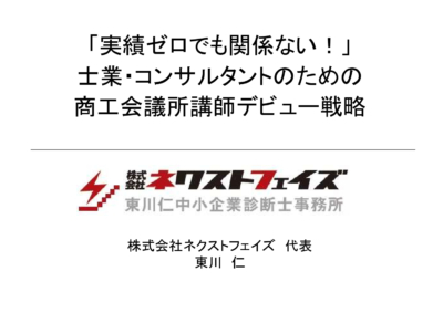「実績ゼロでも関係ない!」士業・コンサルタントのための商工会議所講師デビュー戦略 スライド