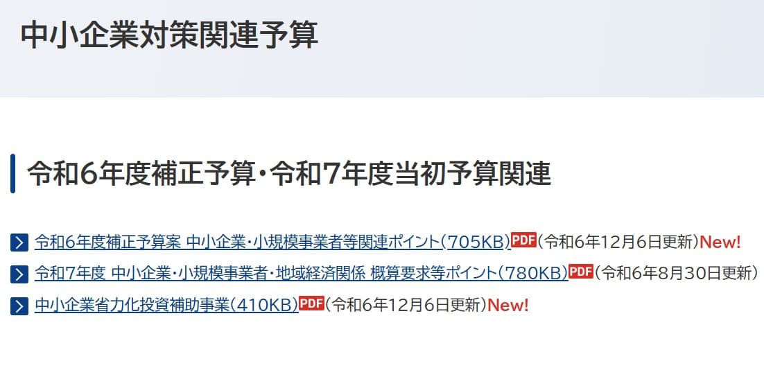 12月9日中小企業対策関連予算