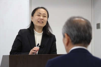 ●本番プレゼンを終えた後の、振り返りディスカッション。受講者たちの表情がリラックスしています