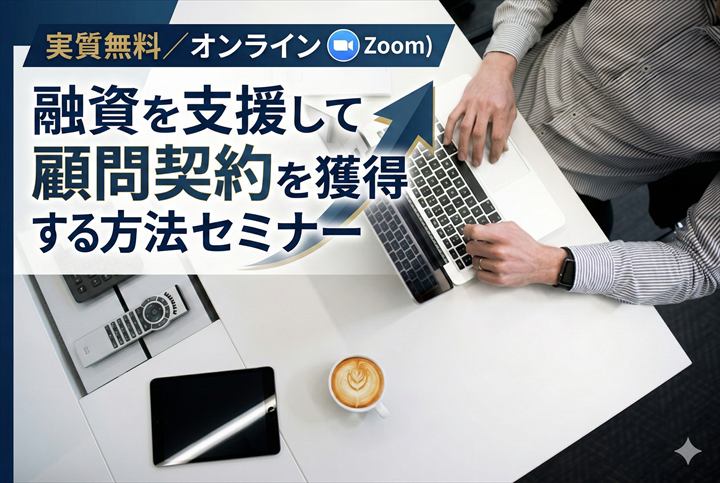 融資支援を通して「最初の1件目」の顧問契約を得る方法を、事例から学ぶ「無料」オンラインセミナーです。ぜひ気軽にご参加ください。